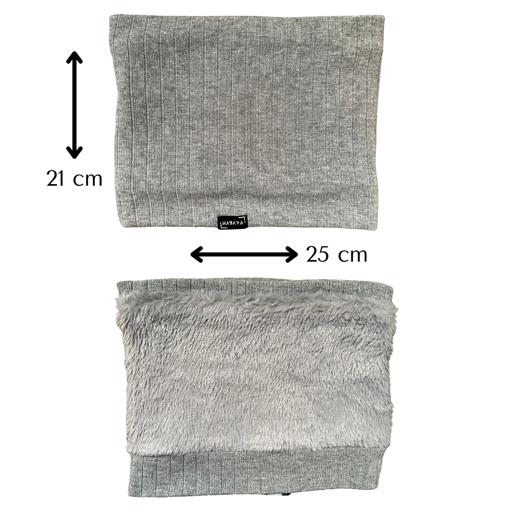 Nos tours de cou sont conçus pour s’adapter confortablement à la plupart des tailles. Pour les mesures nous avons: 25cm dans la largeur (extensible), 21cm dans la hauteur.